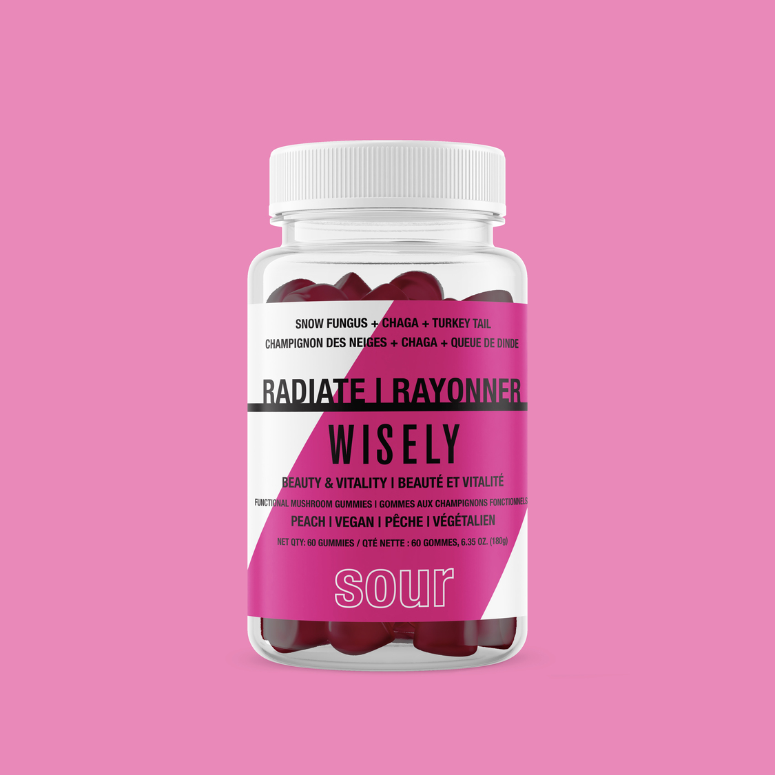 Enhance your natural glow with RADIATE SOUR, featuring Snow Fungus, Chaga, Turkey Tail, Astragalus, and Ashwagandha with a tangy twist. This beauty-supporting blend combines traditional botanicals and functional mushrooms valued in wellness practices, offering a natural approach to supporting skin health and vitality from within with added tartness.